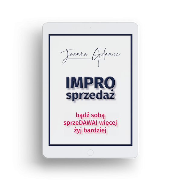 Joanna K. Gdaniec – od prawie 20 lat sprzedaje skutecznie, bez wciskania i manipulacji, tworząc zasady zgodne z autentycznością i sercem. Twórczyni IMPROsprzedaży – metody łączącej profesjonalną improwizację z etyczną sprzedażą. Współtwórczyni Real People Estate oraz Momentum Way / Momentum4Business. Autorka książki „IMPROsprzedaż. Bądź sobą, sprzeDAWAJ więcej i żyj bardziej.” W jej warsztatach, szkoleniach i programach wzięło udział już blisko 100 000 osób, które uczą się sprzedawać z pasją, autentycznością i skutecznością.